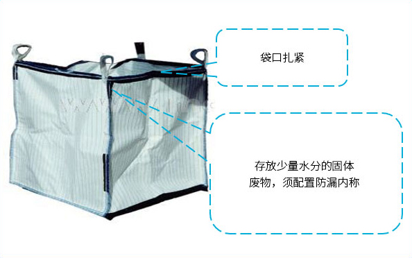 注意!不建議儲存尖銳的固體廢物(如玻璃類廢物),含少量 液體的固廢需使用含內襯的編織袋